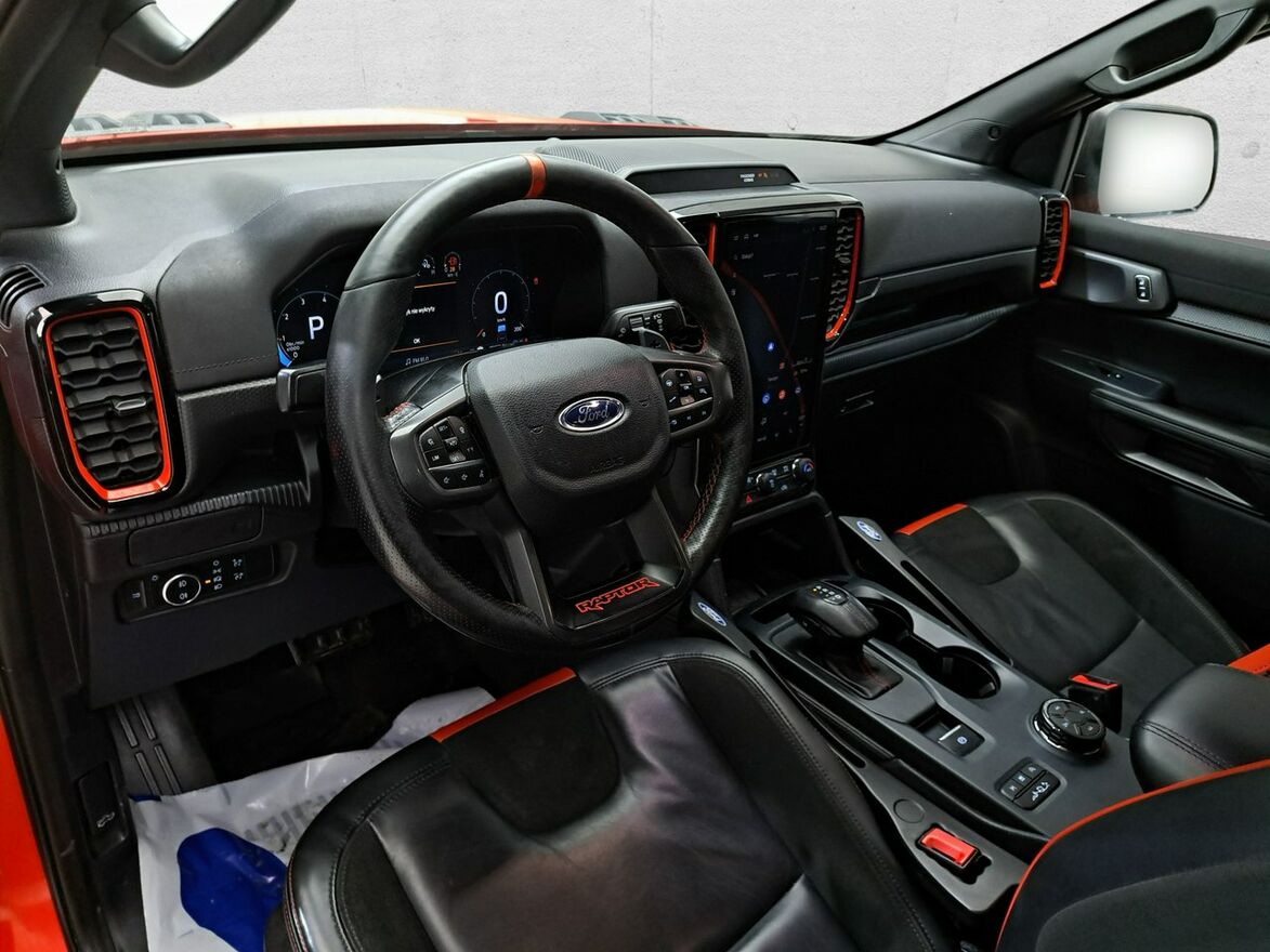 35. Kierownica skórzana, wielofunkcyjna, z logo Raptor i wstawkami w kolorze Code Orange